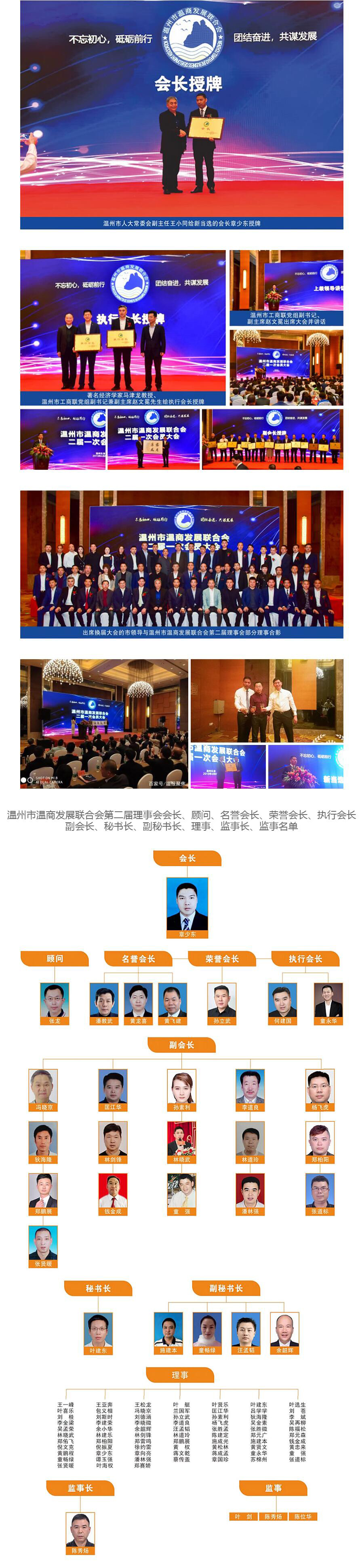 2019年4月6日,溫州市溫商發(fā)展聯合會成功換屆,來自**各地的知名溫商、溫商商會**和企業(yè)家300多人參加了會議并成為二界會員。黑龍江省大慶市政協(xié)委員、中泰科技有限公司董事長章少東先生當選新任會長并發(fā)表講話。講話中提到:在經濟轉型、社會轉型和政府轉型的關鍵時期,遵照“自我管理、自我服務、自我協(xié)調、自我發(fā)展”的方針,溝通多方關系,加強溫商聯絡,聯合溫商力量,整合各界資源,推動溫州企業(yè)創(chuàng)新發(fā)展,做大做強,打造溫商**和溫商名片,促進溫州總部經濟持續(xù)、穩(wěn)定、健康、高速的發(fā)展。章少東董事長在講話中還提到通過規(guī)范運作,提高組織、指導、協(xié)調、服務水平,在政府和企業(yè)之間發(fā)揮橋梁紐帶作用,對會員單位強化協(xié)調服務職能,做出積極貢獻!